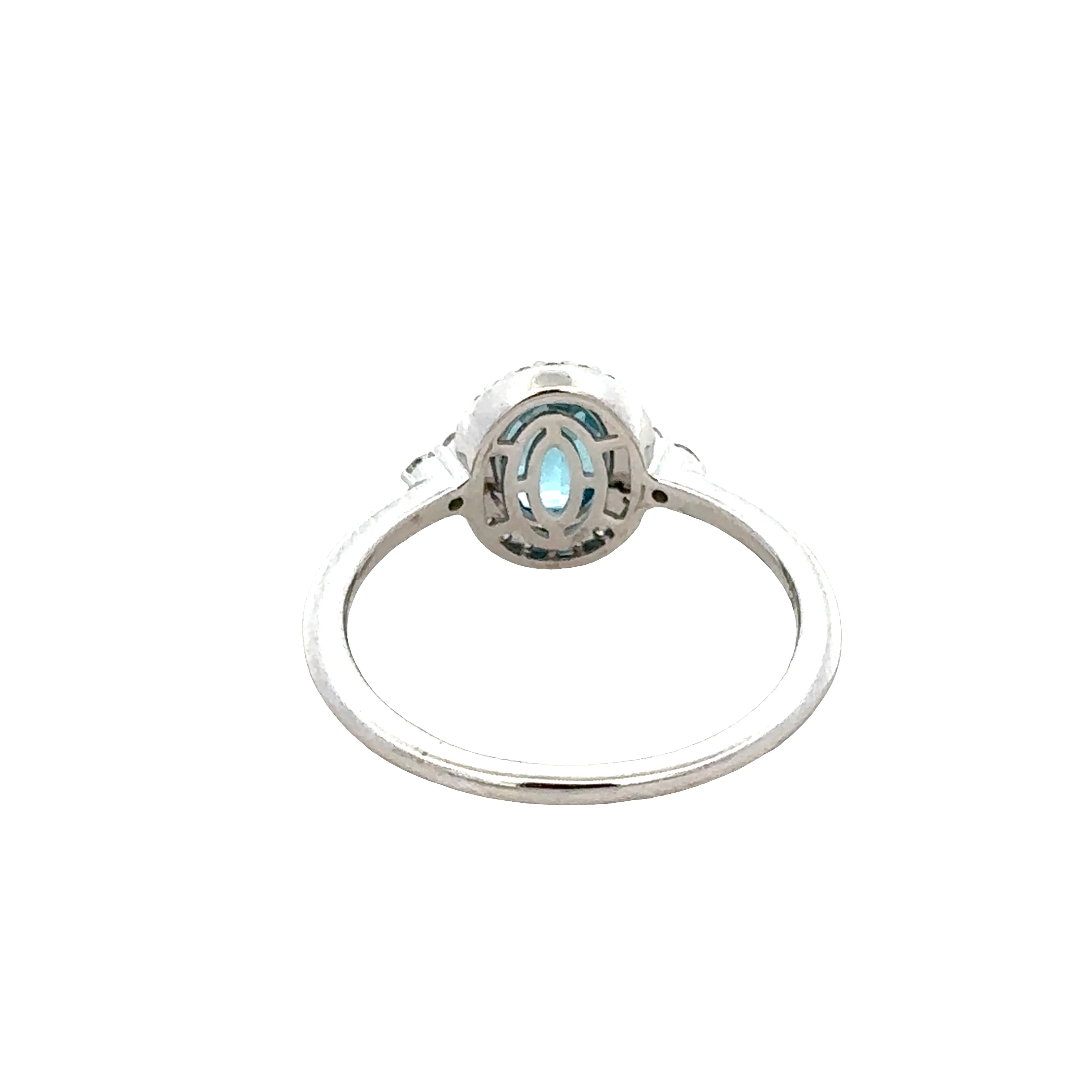 14k White Gold Blue Topaz and Diamond Halo Ring – Size 7.25