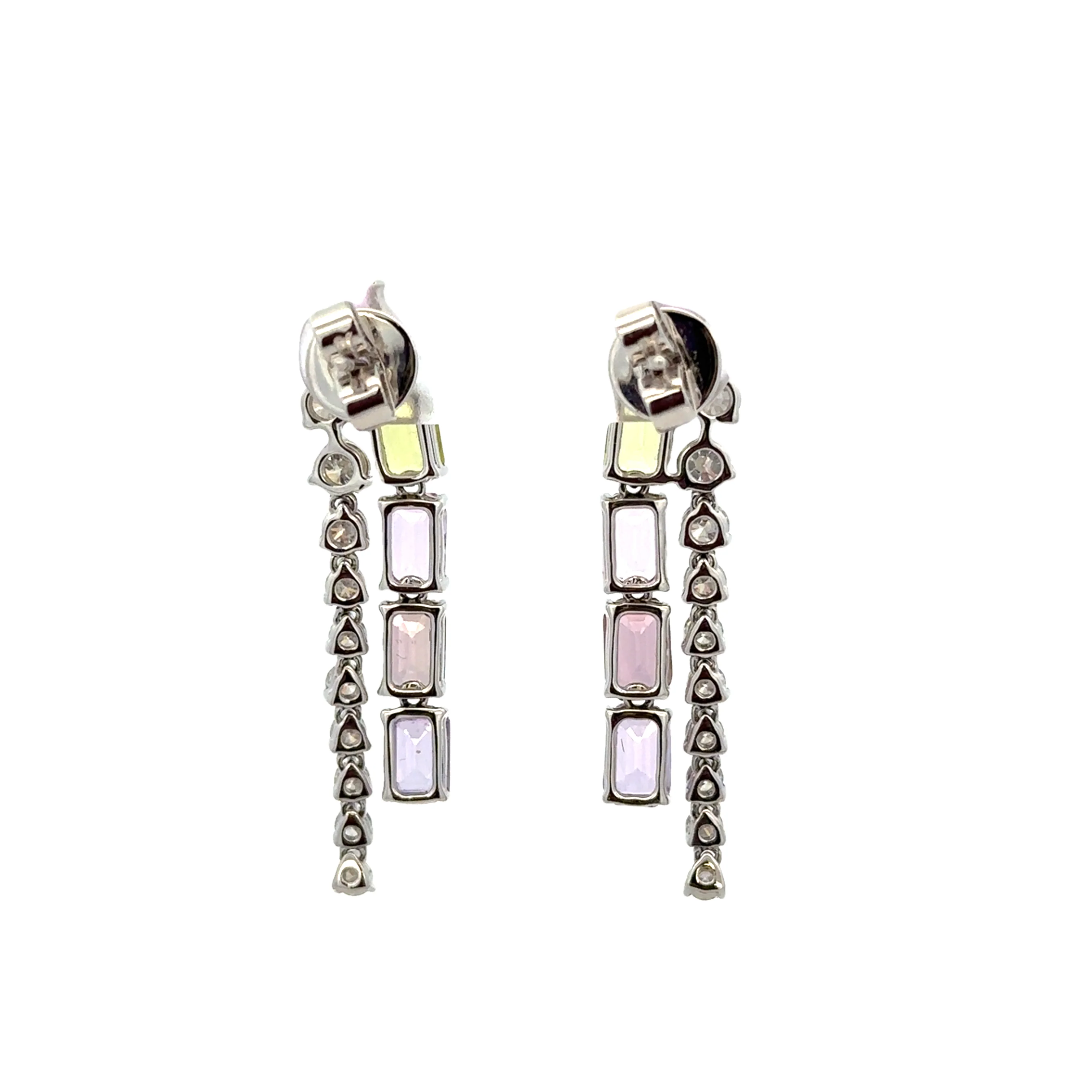 Unique Multi-Colored Sapphire and Diamond Earrings in White Gold